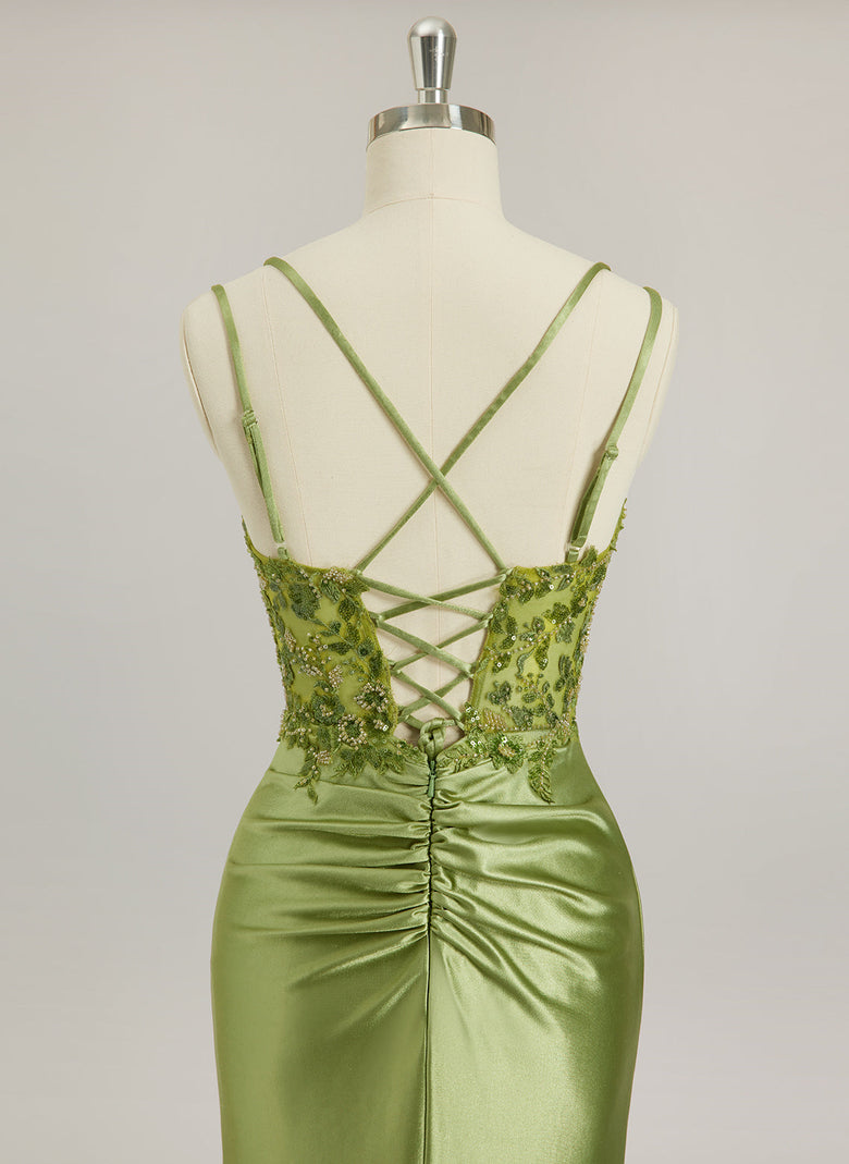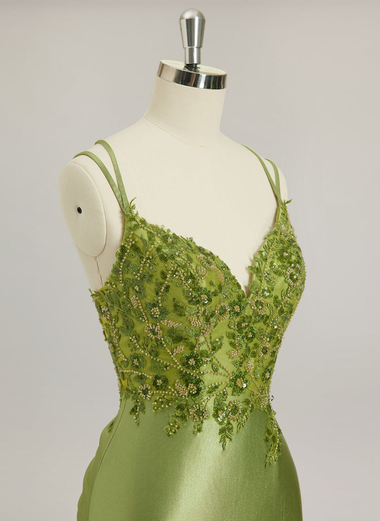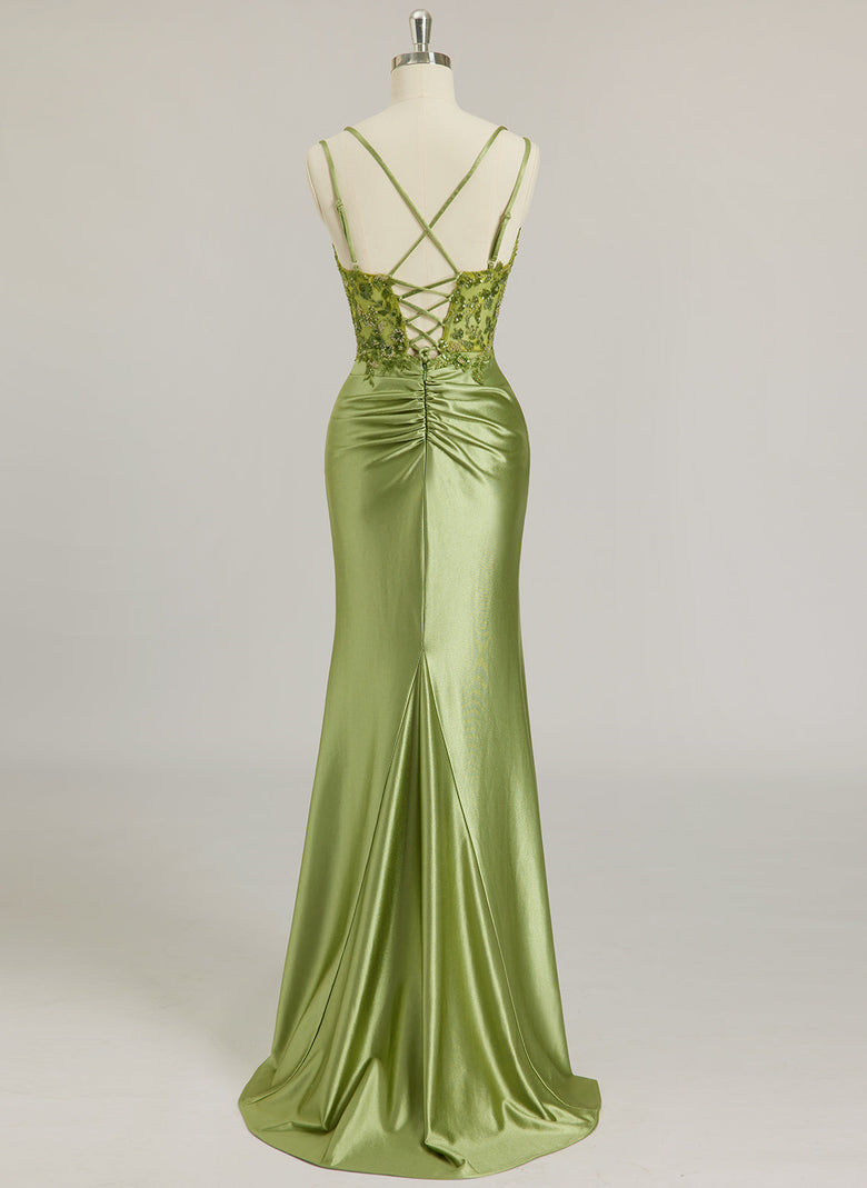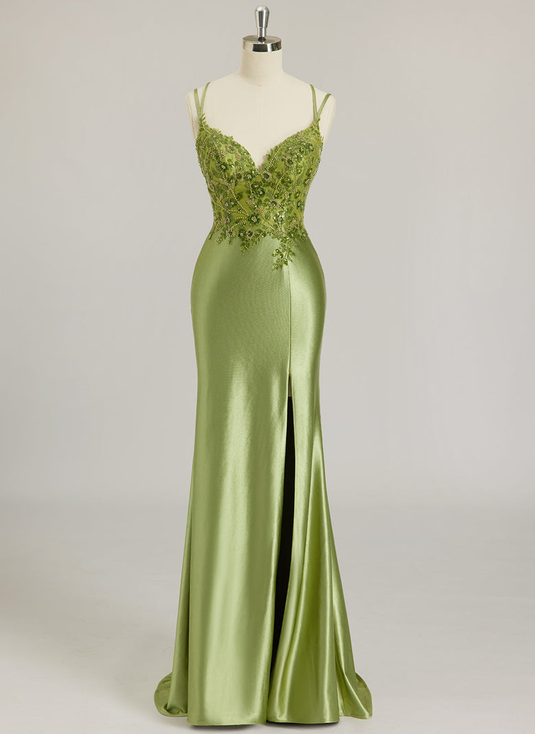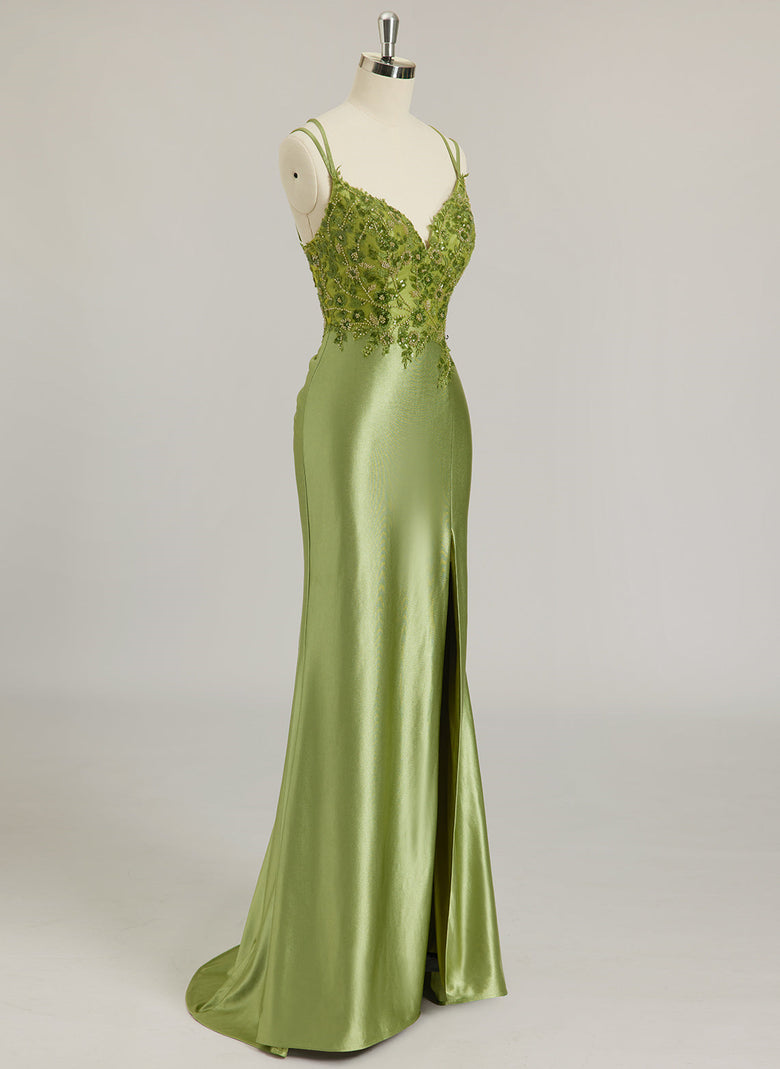 Spaghetti-remmar V-ringning Elegant vintage vacker ryggpärlbroderade paljetter Jersey Trumpet/Sjöjungfru Maxiklänning med benslits